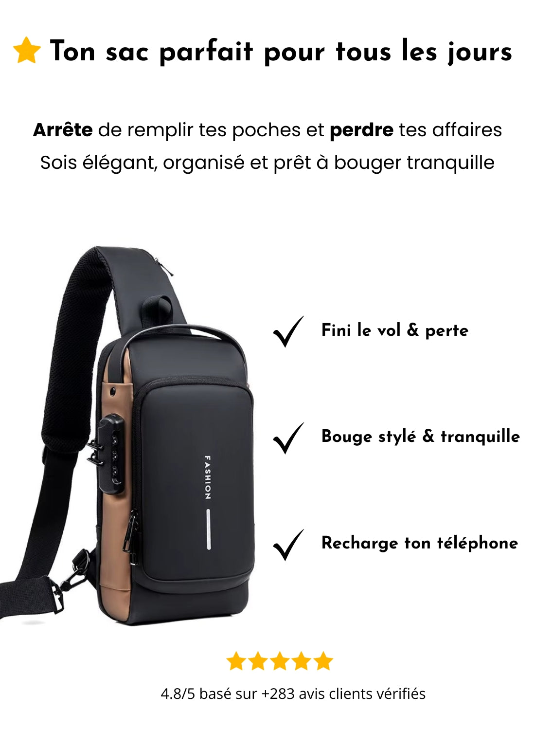 🔥 Toujours protégé, toujours stylé : la sacoche qui garde tes affaires en sécurité et ton téléphone chargé partout où tu vas.